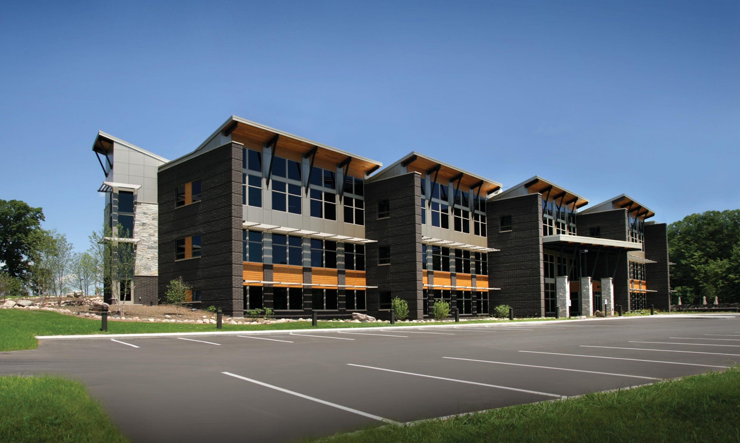 From massive roof decking timbers, salvaged from a Marina in La Crosse, Wisconsin, to Doug Fir paneling salvaged from Green Bay Pickle tanks, story and character are present throughout the 3 levels of offices and conference rooms.  Perhaps the salvage coup was rescuing timbers from the original Thomas Edison Factory in New London, Wisconsin.  These historic timbers were re-sawn into massive 4” thick x 60” stair treads as well as random width boards cladding the ceiling of the expansive lobbies.