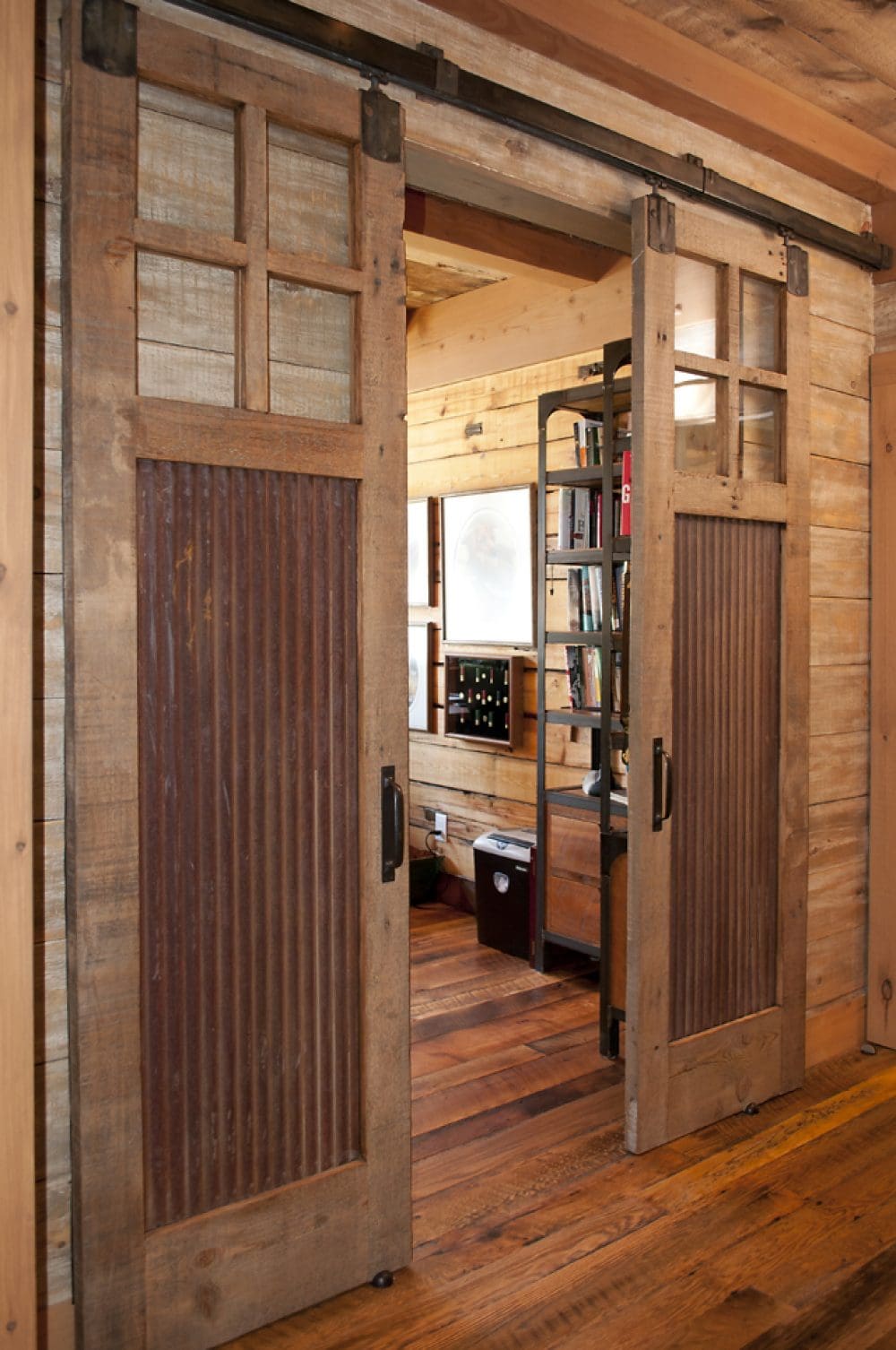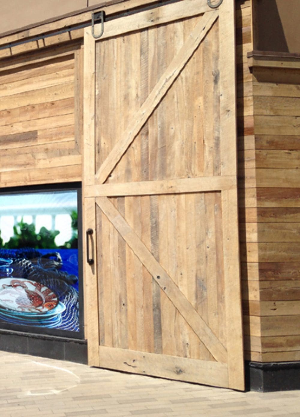 The classic barn door is structured just like the original, and is available in reclaimed pine or oak barn wood. Our track-and-roller systems allow doors to glide smoothly and effortlessly and are available in natural clear, powder coat black, and galvanized.