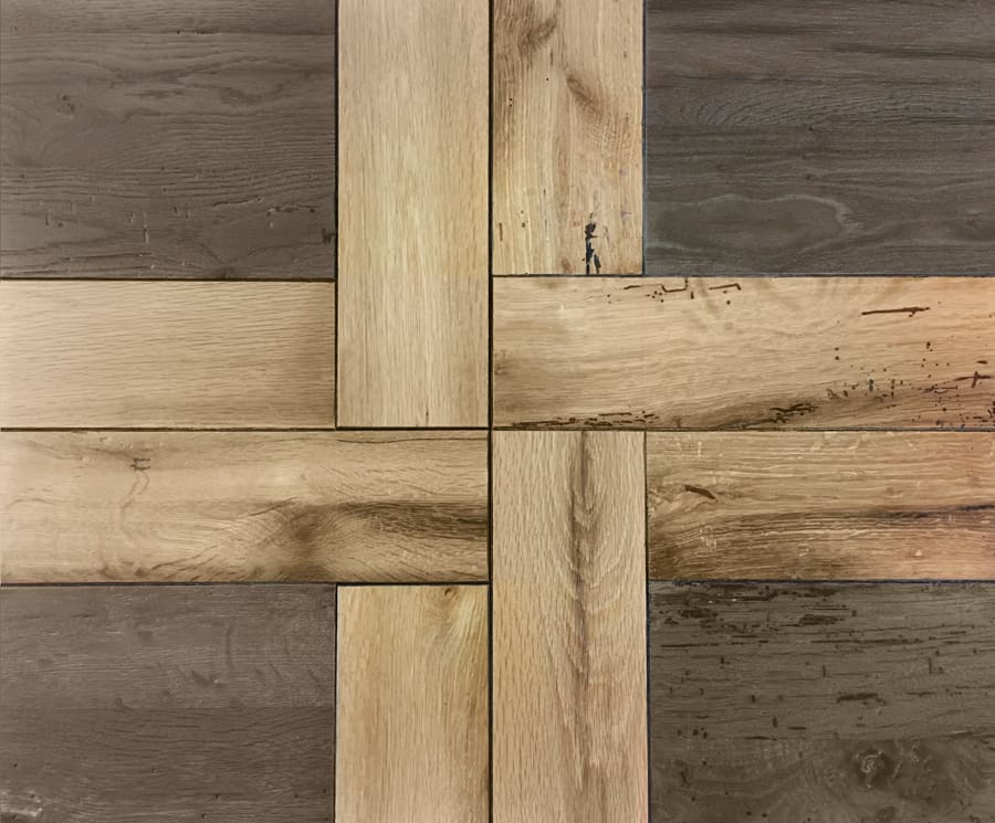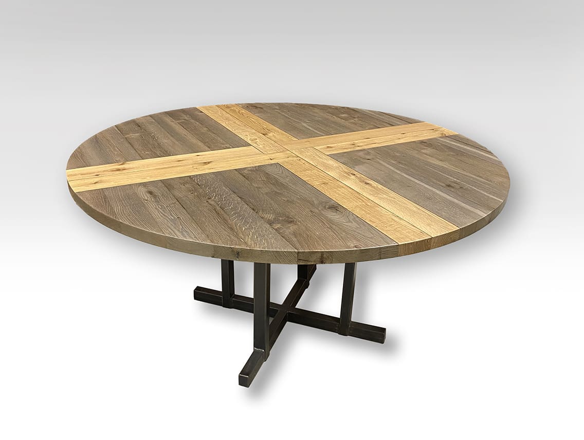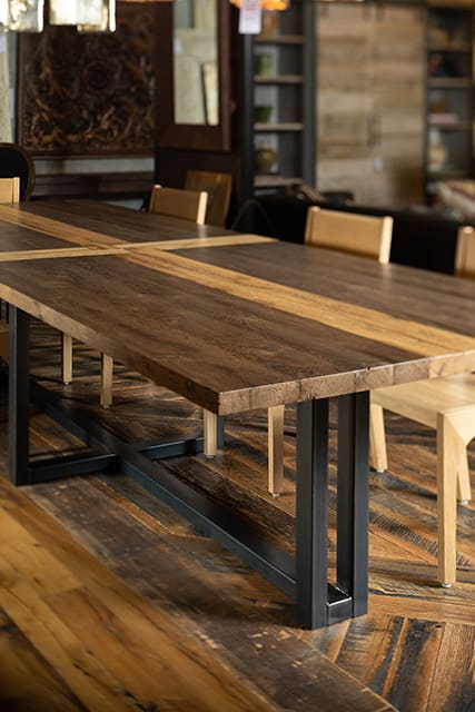 Our Woven Top White Oak conference table is made from sawn oak timbers reclaimed from century-old barns across the Midwest. The woven detail is an excellent choice for incorporating contrasting finish options as well as disguising seams for larger tops that require delivery in two or more sections.