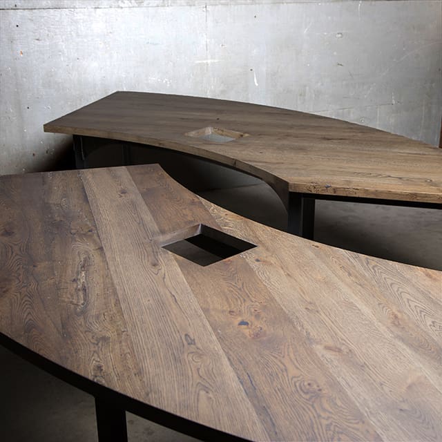 It is also available in our White Oak Custom Curved Media Table and Urban Ash Round (both pictured here).