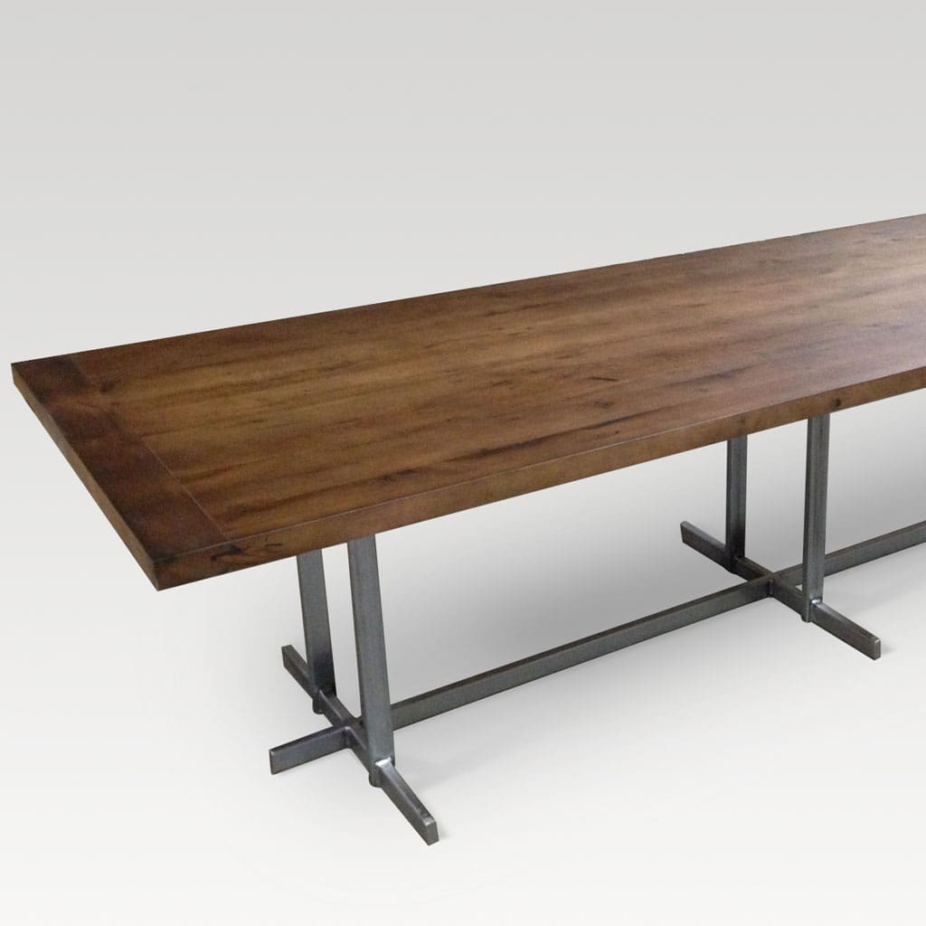 The Wright Conference and Community Table is made with our reclaimed white oak salvaged from century old barn timbers throughout the midwest. The Wright table base is one of our most versatile for seating. Shown here 12′ x 4′ x 30″H with our light smokehouse finish.