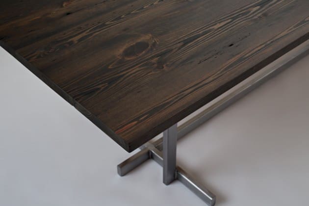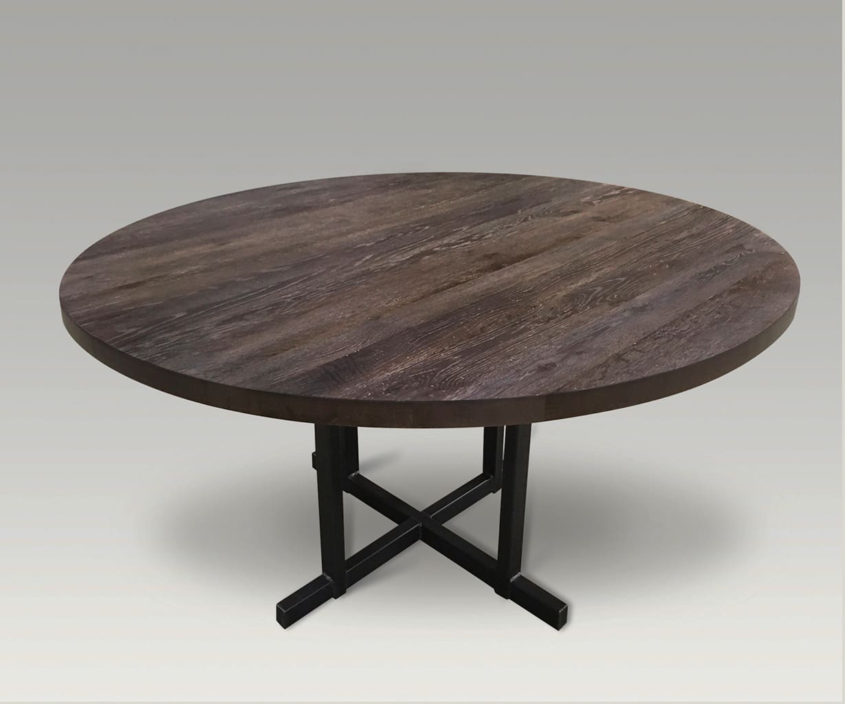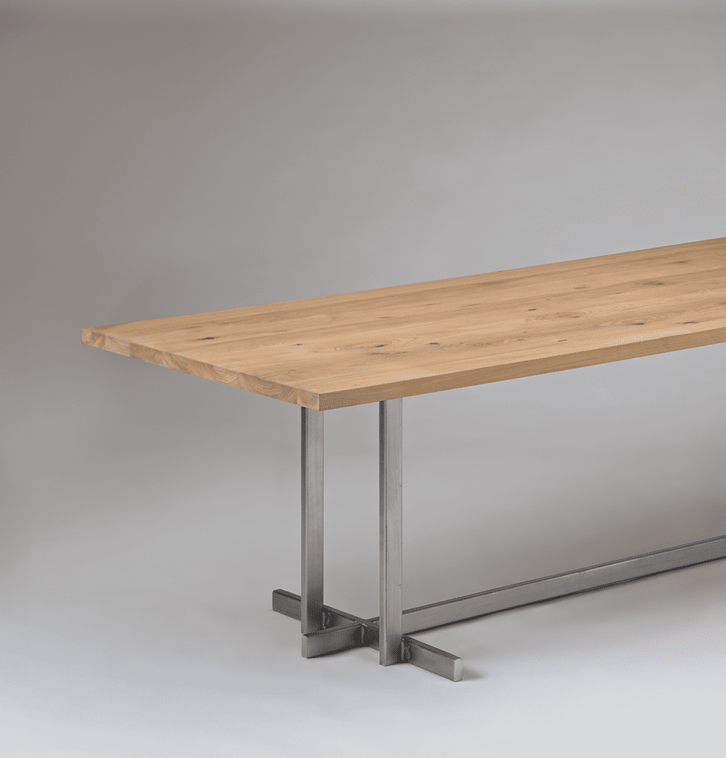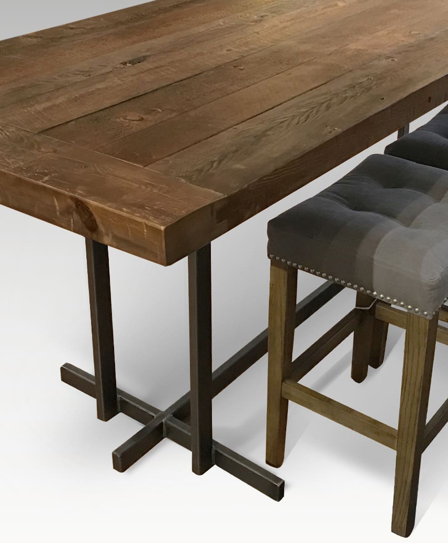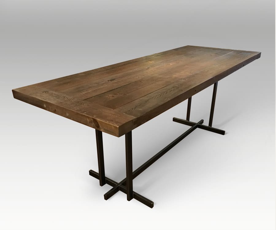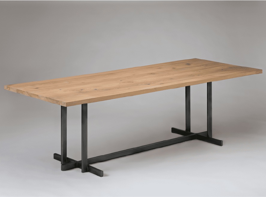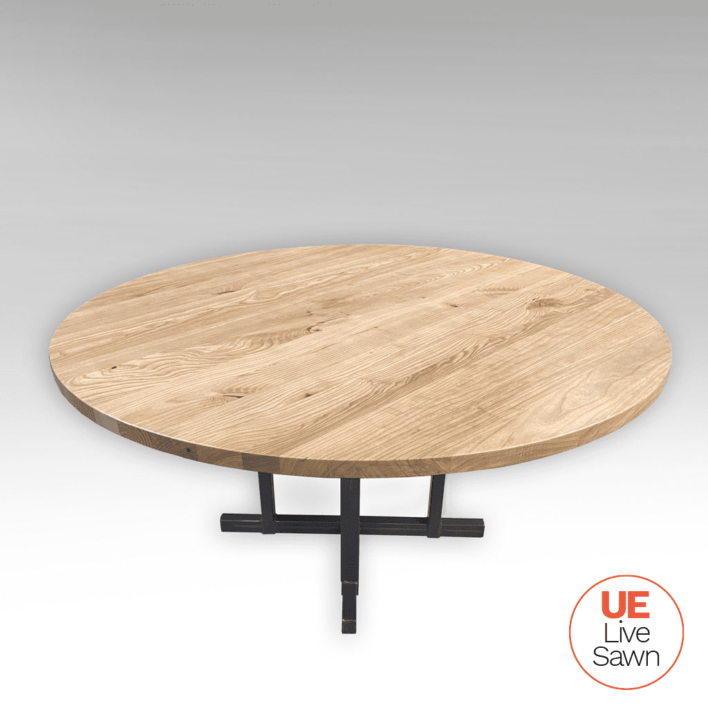 The Wright table base is one of our most versatile for seating and comes in a variety of powder coated finishes. Shown here in a variety of tops including UE LIVE SAWN urban ash, reclaimed elm and live edge walnut.