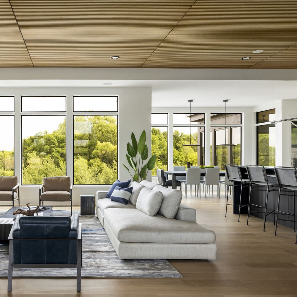 Along the windows in a large pool room, our clients wanted to hide the large roller shade systems. To answer this need, Urban Evolutions created constructed beams that could encompass the mechanisms, allowing the motorized shades to drop from a thin slot in each beam.